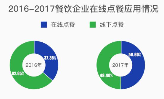 对比微盟研究院发布的《2016上半年中国智慧餐饮服务市场发展研究报告》,报告数据显示,2017年餐饮企业应用移动支付的比例达到73.8%,而2016年这一数据为47.74%;2017年餐饮企业应用在线点餐的比例从2016年的37.25%提升到50.6%。这表明,餐饮企业的智慧化应用程度正在提升。