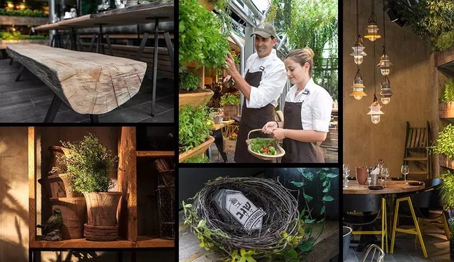 想建构这样的鲜摘餐厅,一开始室内设计装潢时,就要特别为植物预留空间,以植物也是重要装饰品的概念去发展。并且多用心在透光度及照明光线等,让植物的生长需求也考虑进去。要注意的是,搭配绿色植物的最佳装潢,是木制家具。