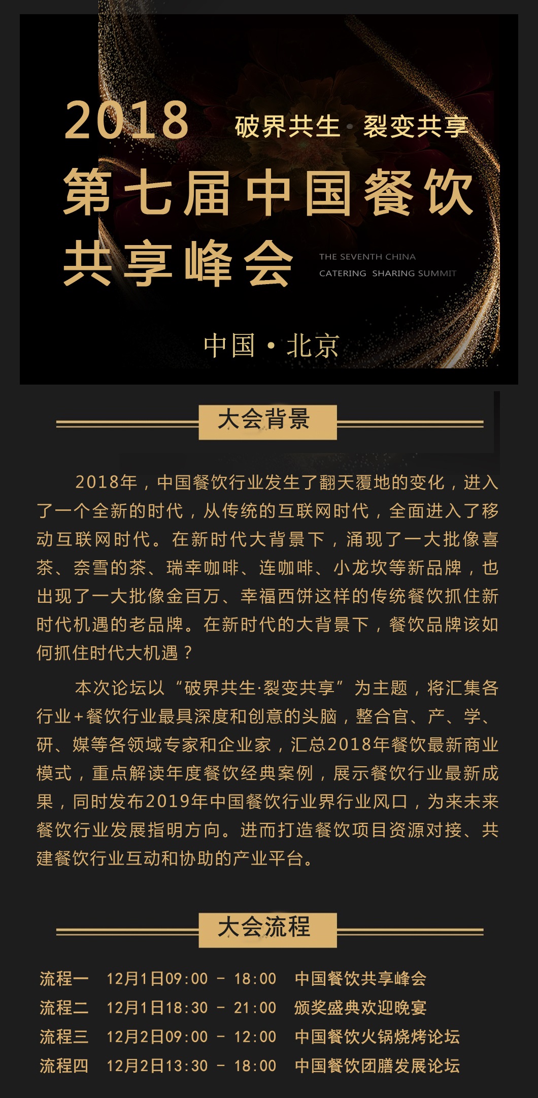 2018第七届中国餐饮产业共享峰会将于2018年12月在北京举行……活动