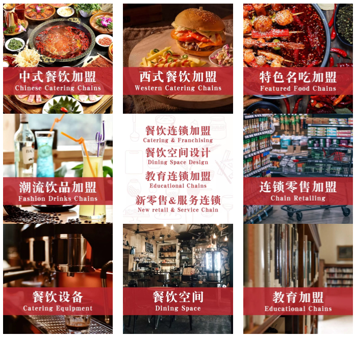 时尚茶饮甜品、传统快餐小吃,大型中餐;特别增设的国民教育、购物、生活服务等教育连锁、新零售、服务连锁加盟机构;当红品类,时下爆品,齐聚一堂,这里是一场饕餮盛宴,更是一场餐饮业内文化传承与现代时尚的激情碰撞,是各大餐企与中小创业者的智慧交流,注定将火花四溅。