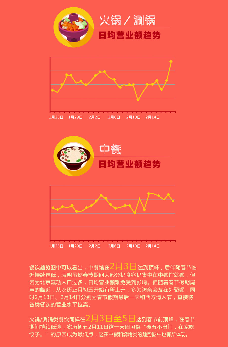 你能想象的到吗?春节期间客单价最高的是中餐;烧烤热销品中肉占绝对主流;火锅热销品中儿时的味道——北冰洋汽水拔得头筹,大家是如此的怀旧。更多详细内容,请看本期吃货大数据。