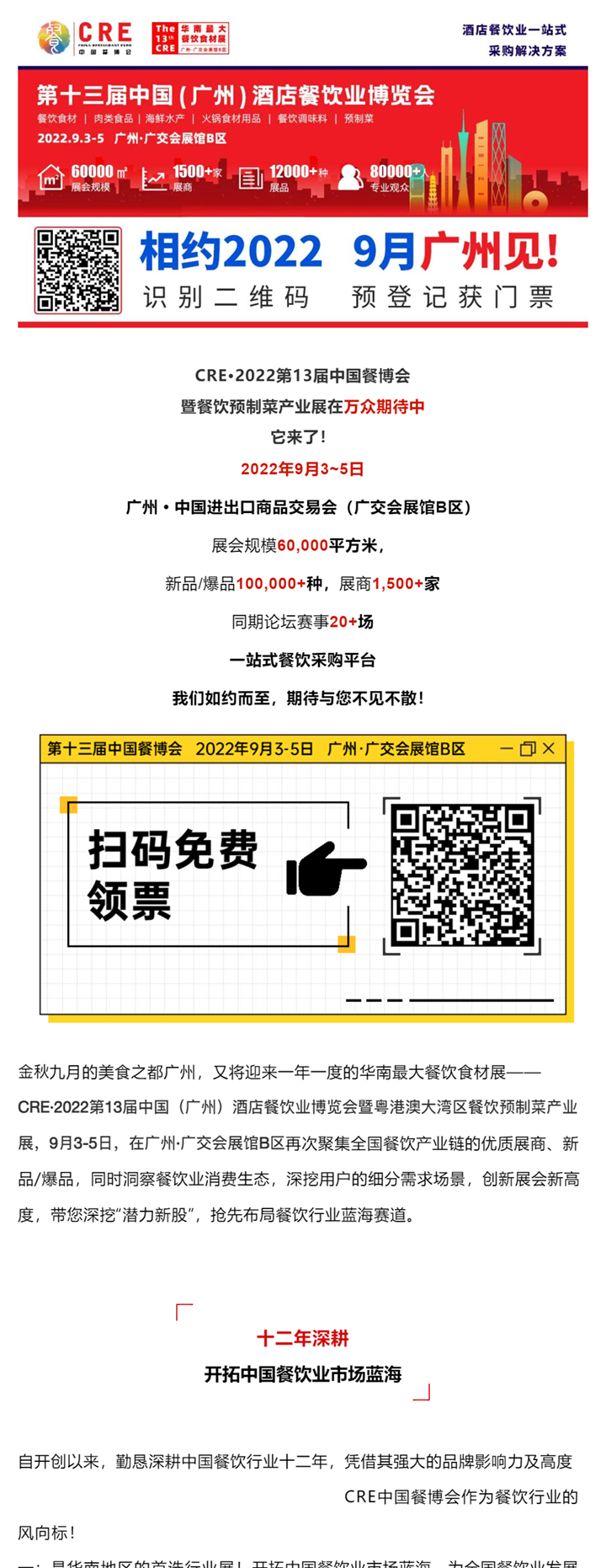 CRE第十三届中国餐博会9月3日开幕!千家展商、数万爆品、8万+餐饮人齐聚羊城活动
