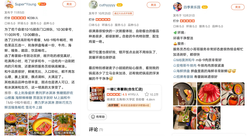 随着人们生活质量日益提升,对肉的品质要求也越来越高,为了让顾客吃到更优质的肉,一绪为消费者带来M级和牛,最高级别M8-9。顾客在大众点评上纷纷留言:“一绪的牛肉很好吃、肉质新鲜、品种多”“能敞开吃的感觉真好,吃满了两小时”“和牛品质很好,鲜嫩无比,裹上可生食的朝一鸡蛋,太满足了”……