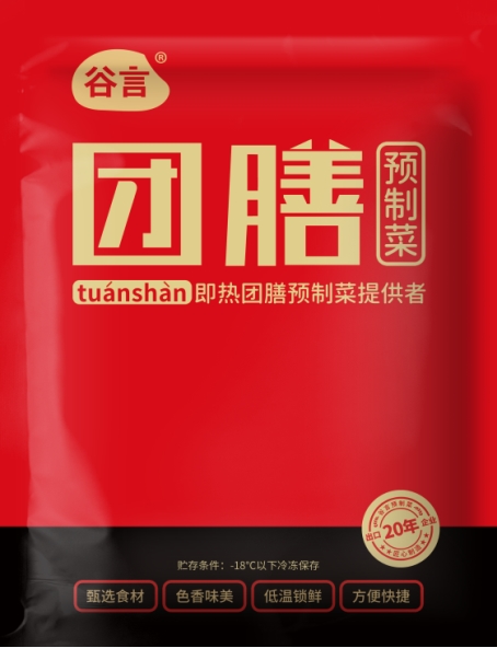 新品谷言团餐系列,规格为1kg/袋,主要为餐厅、学校、企事业单位、医院食堂等团餐渠道提供标准化畅销菜品,现有产品十余种,一步操作,加热即食,美味速成,为使用单位节省人工,降本增效。