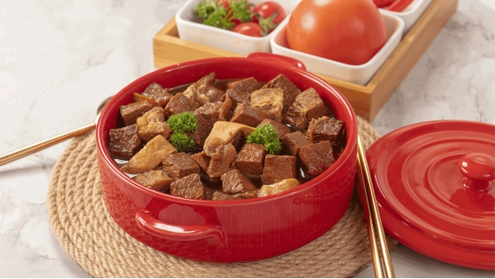 谷言在新西兰拥有多个优质自营和牛牧场,在国内外拥有上百个签约养殖基地,在牛肉原料供应上占有绝对优势。谷言预制菜的牛肉类产品深受经销商、终端门店以及个人消费者好评,谷言B端预制菜主打产品日式肥牛,无论是牛肉原料、菜品口感、出餐效果都在行业内首屈一指;谷言C端预制菜主打产品谷言牛套皮是石家庄当地的特色美食,谷言经过3年潜心研制,上千次实验,最终将牛套皮打造成一款仅需加热15分钟就能端上桌的美味预制菜。其他如:谷言快手菜的土豆煨牛肉、谷言团餐系列的原香牛肉等产品,均依靠谷言强大的牛肉资源优势,成为炙手可热的预制菜行业爆款产品。
