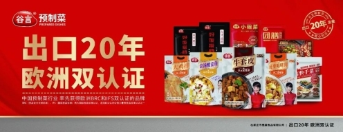 出口20年,欧洲双认证,谷言预制菜——致力于与合作伙伴可持续性共赢发展,为消费者提供安全放心、营养美味的“高品质预制菜”。