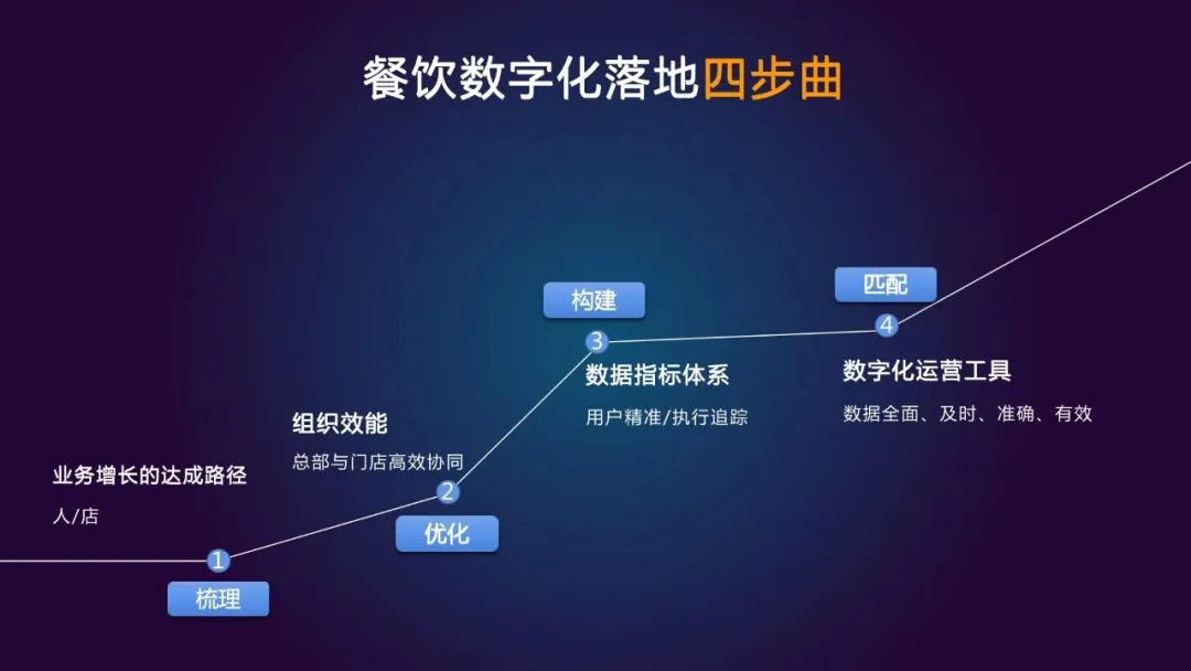 总结下来,餐饮数字化的落地,可以分为4步: