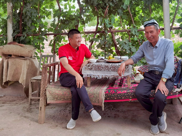 在与当地农户亲切交流之后,管氏翅吧创始人管其兵深入田埂,在一株株孜然植株间考察当季孜然的产新情况。5月底的孜然种子呈现嫩绿色,粒粒饱满,散发着独特的香气。管其兵轻抚着孜然植株嫩绿色的叶片,并不断询问关于孜然生长情况的细节。“往年这时候已经在收割了。”当地农户依力哈木大叔向他介绍到,“今年闰二月,孜然生长期延迟,长势也更加喜人,估计今年是个好收成!”言语之间,依力哈木大叔脸上泛出淳朴而快乐的笑容。