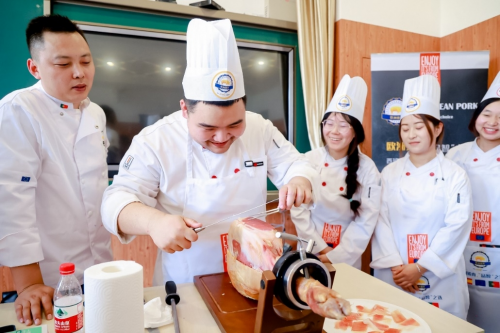 一场由欧盟赞助的,以来自西班牙和葡萄牙的欧洲猪肉为主题的餐饮文化交流活动,在天津职业大学成功举行。本次活动是欧洲猪肉大师班活动的其中一站,接下来还将在广州和成都陆续举办,敬请期待!