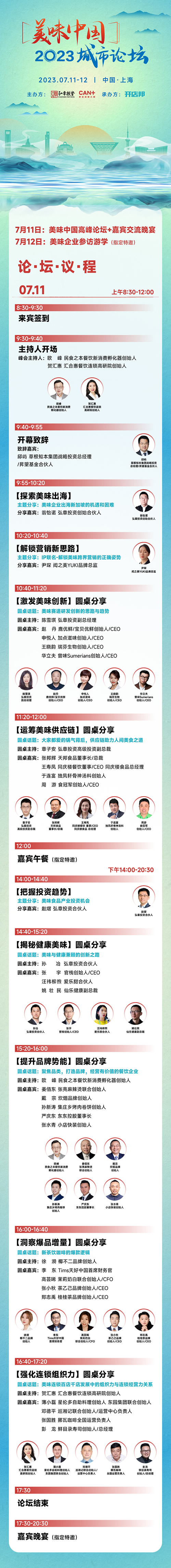 由弘章投资联合参加CANPLUS主办,餐饮界媒体支持的“2023美味中国上海高峰论坛”将于7月11-12日在上海隆重举办。