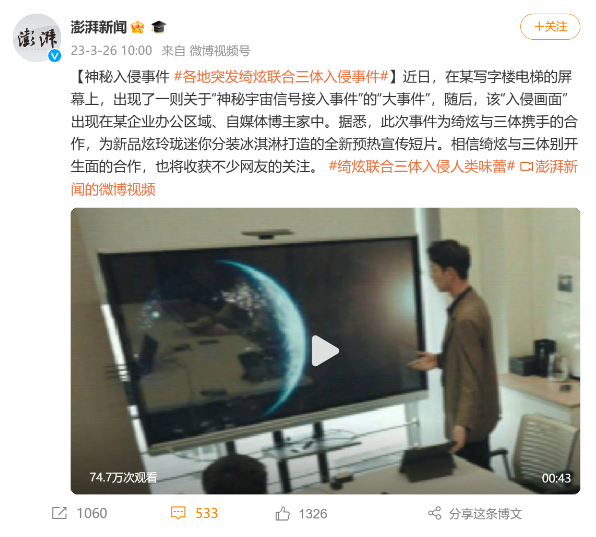 整体回顾近几个月冰淇淋类产品在各类媒体上发布的信息,可以发现,绮炫上市以来通过大屏、梯媒等户外媒体结合主流长、短视频平台全面覆盖了目标消费者的衣食住行。在此基础上,绮炫跨界小米、联动三体IP、联合当红明星宋轶开启“打卡爱丽丝最爱冰淇淋”等创意丰富的打卡活动,让品牌影响力渗透不同圈层。在小红书上,绮炫身影也经常出现,在淄博烧烤、520等时间节点和热点事件期间通过KOC与消费者积极互动,推动种草效果的社交裂变。系列活动总曝光量超过3.7亿次,并沉淀了大量优质原创笔记,形成传播长尾。