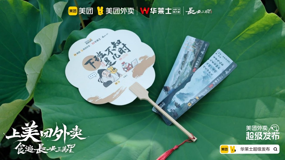 活动期间推出了李白诗词 x中华诗词系列定制联名新品套餐,涵盖烧烤香骨鸡、卤辣脆鸡架、0酒精气泡啤等。同时,还推出了诗词扇、书签等美团外卖x华莱士中华专属浪漫周边,随外卖赠送,让消费者一饱口福的同时,可以随时随地领略到诗意之美及文化之美。