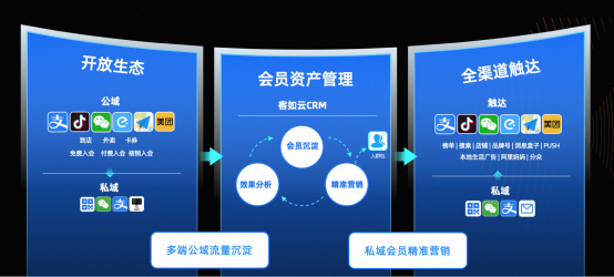 从私域流量积累方面来说,使用客如云核销团购券或小程序点单后,流量就会沉淀至商家后台,数据清晰透明,可以为商家所用。融合后增加入美味不用等功能后,更拓展了企业微信、社群营销、公众号内容运营等多种私域渠道的会员运营模式,把通过排队、订座、团购、代金券核销等不同形式吸引来的顾客,全部纳入商家流量池。