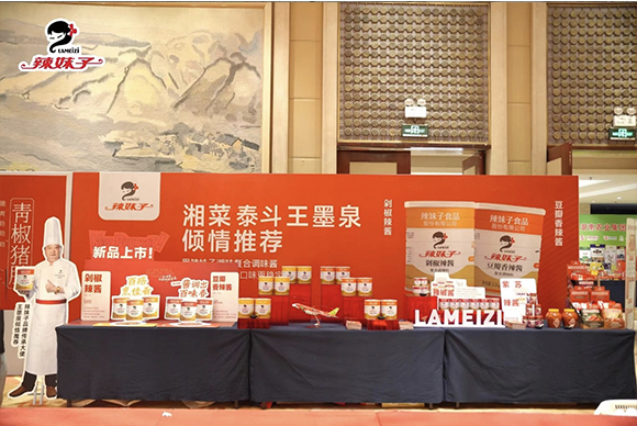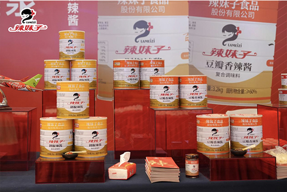 2023年9月10日,在第十八届中国湘菜美食文化节上,辣妹子携两款全新产品——3KG剁椒辣酱和3.2KG豆瓣香辣酱惊艳亮相,并独家冠名本届美食节“名厨创意烹饪赛”,通过两款产品在烹饪菜品中的实际应用,向全社会更充分地展示烹饪大师的厨技和湘菜风味的魅力,推动餐饮调味创新发展交流。