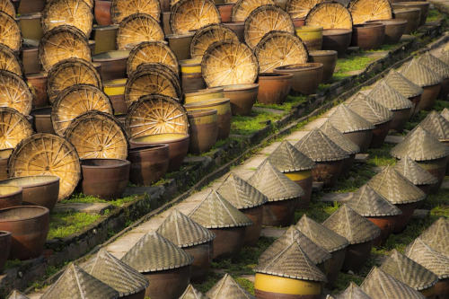 赤水河沿岸的三伏天,常年维持着恒温与 75% 以上的湿度,这种独特的气候条件,恰是微生物发酵的黄金参数。45 度斜坡上的数千口陶缸,并非随意摆放 —— 倾斜角度能让每缸原料均匀接受日照,陶土的透气特性则能调节缸内湿度,形成天然的 "发酵实验室"。当地实验室检测数据显示,这里的菌群经过百年驯化,已形成稳定的微生物群落,在三伏天的旺盛代谢中,能将黄豆蛋白分解为 18 种氨基酸,其中鲜味氨基酸占比高达 42%,这正是鲜味的核心来源。