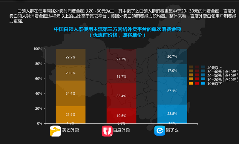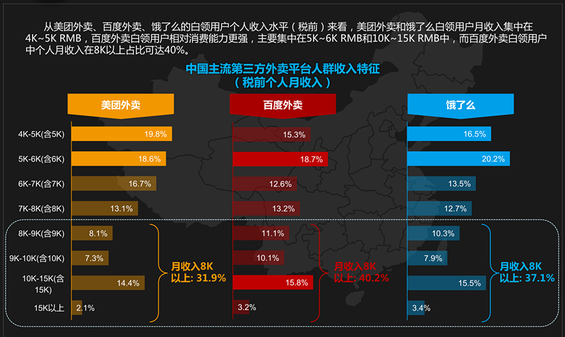 相比较其人群,白领用户对外卖平台有更高的黏性,并且随着外卖平台产品与服务不断的成熟完善,这部分用户将会变成最为忠诚的原始用户。
