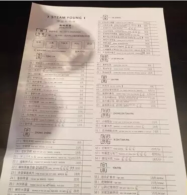 打开一页极为简单的餐纸,上面有简菜、中蒸、大蒸、绿色蔬菜、菜饭、中式甜品、西式甜品、饮品选项。一页纸就写完了,仔细看菜单的逻辑,我们可以发现:这家餐厅充分考虑到了蒸菜的特点(以及缺点),菜单的排布正是迎合消费者需求的“前、中、后”三步就餐法。而且,既然是做“蒸年青”,它的主要产品,确实都是蒸品,想来小金哥为了将产品项浓缩再浓缩,产品筛选、迭代的工作是没少做的。毕竟加法易,减法难啊!