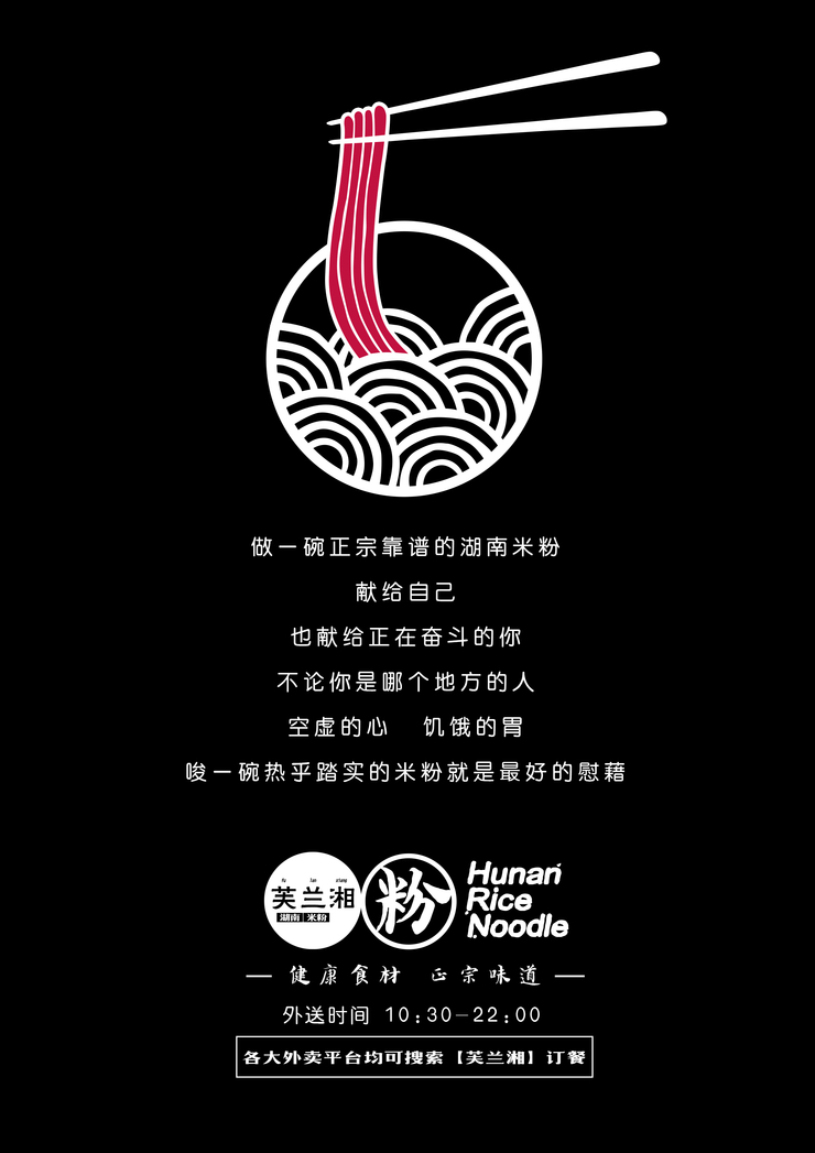 于是三个90后组成的团队在北京创立了一个以湖南米粉为主打产品的互联网餐饮外卖品牌:”芙兰湘”,芙兰湘主打的是湖南长沙米粉,长沙米粉浇头丰富,不同的浇头就有不同的口味,汤头、米粉、浇头组成了长沙米粉的铁三角。基于汤头、米粉、浇头这个铁三角的产品基础上,芙兰湘做了非常多的味道创新,让产品的形式更加新颖丰富。同时团队认为”米粉“是一种特别适合通过外卖方式销售的“简餐食品“,将湖南米粉制作成健康好吃的快捷简餐,满足都市白领人群、尤其是以白领女性用户为主的消费人群的工作餐需求。