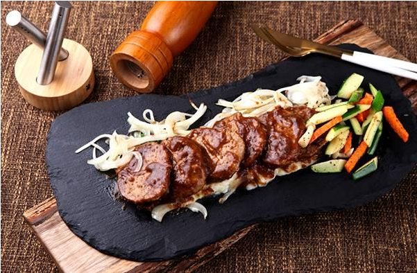 火焰牛肉串是我们广州鑫桂园的招牌菜,也是一款高毛利菜品。它的原型是孜然烤牛肉串,虽然味道不错,但是售价三十多元食客吃后还没有感觉。于是,我对它进行了改良。菜肴上桌前,我们将牛肉腌好,串在竹签上,入油锅炸至成熟,捞出控油,撒入孜然粒,摆放在特制的架子上。菜肴上桌后,将牛肉串放在燃烧的高度白酒上炙烤牛肉串即可食用。菜肴还是那份菜肴,用料的总量也没有改变,改良后的菜肴售价增长到58元/份。