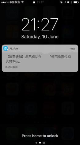 用户收到扣款信息