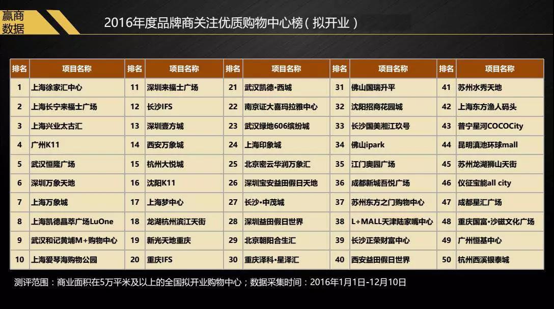 均由中国最大的商业地产与零售行业数据平台——赢商大数据中心发布。