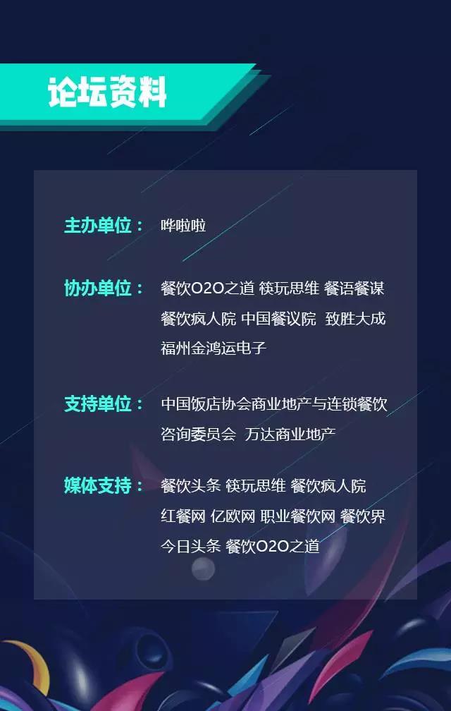 本次论坛我们邀请政府直管部门领导、餐饮行业领导、餐饮相关专家、知名餐饮企业、餐饮互联网企业等领域的行业领袖及近1000名高管共同参与,一起探讨“小餐饮、大连锁”的发展策略。