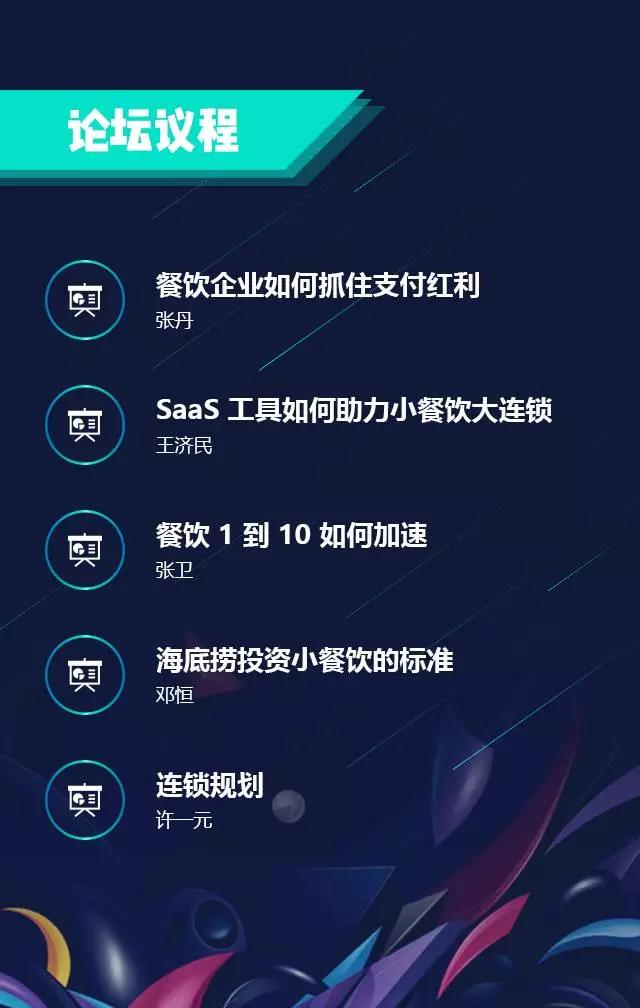 在这一天的论坛活动中,干货分享将以多样化形式呈现,在话题够新、干货够足的基础上,保证吸收更易!论坛将以十三场主题演讲、二轮圆桌来诠释“小餐饮、大连锁”发展和未来。