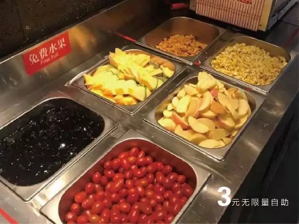 除醉排骨外,醉得意还提供了超值服务:“3元无限自助”。只需花3元,即可享受米饭、水果、茶水等产品无限量自助。