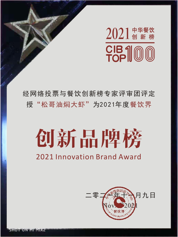 松哥油焖大虾斩获2021中华餐饮创新榜TOP100“创新品牌榜”专栏