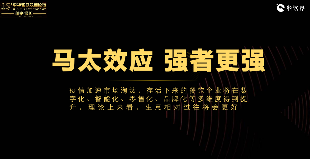 由此我们发现:马太效应生效,强者恒强!疫情只是加速淘汰,而活下来的餐饮企业,在疫情的自救下,可能在品牌、营销、数字化、供应链等多维度都实现了迭代升级,理论上讲,生意有可能更好了。