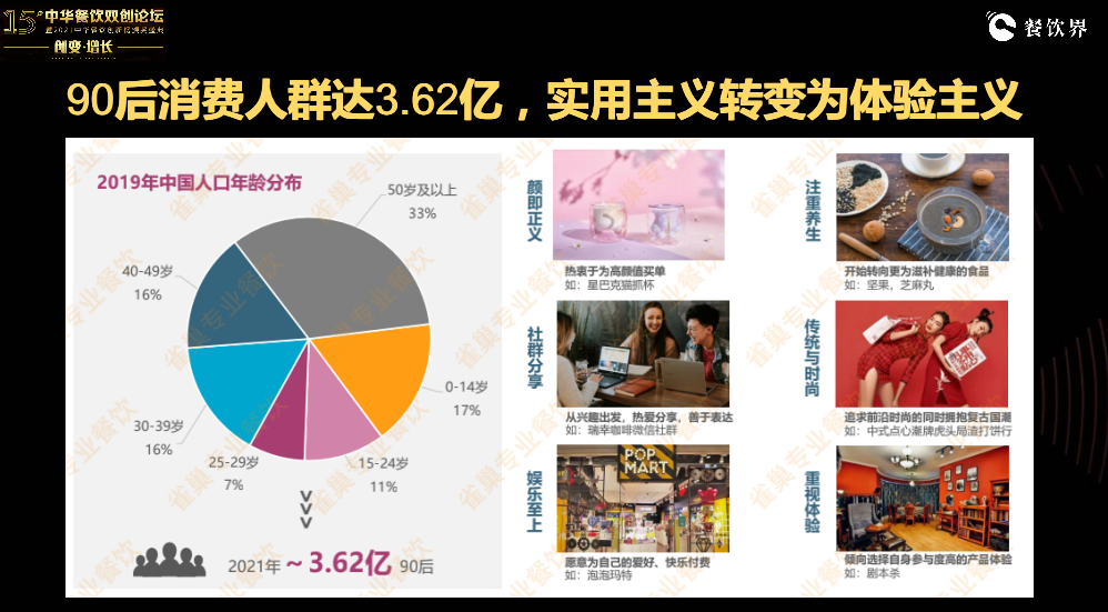 据相关数据调查显示,90后消费人群达3.62亿,而这类人群已经成为当下的主流消费人群。我们也通过洞察与研究得知,90后人群有6大明显的标签:颜值正义、社群分享、娱乐至上、注重养生、传统与时尚、注重体验。所以,过往70-80注重的实用主义,慢慢转变为90后的体验主义。