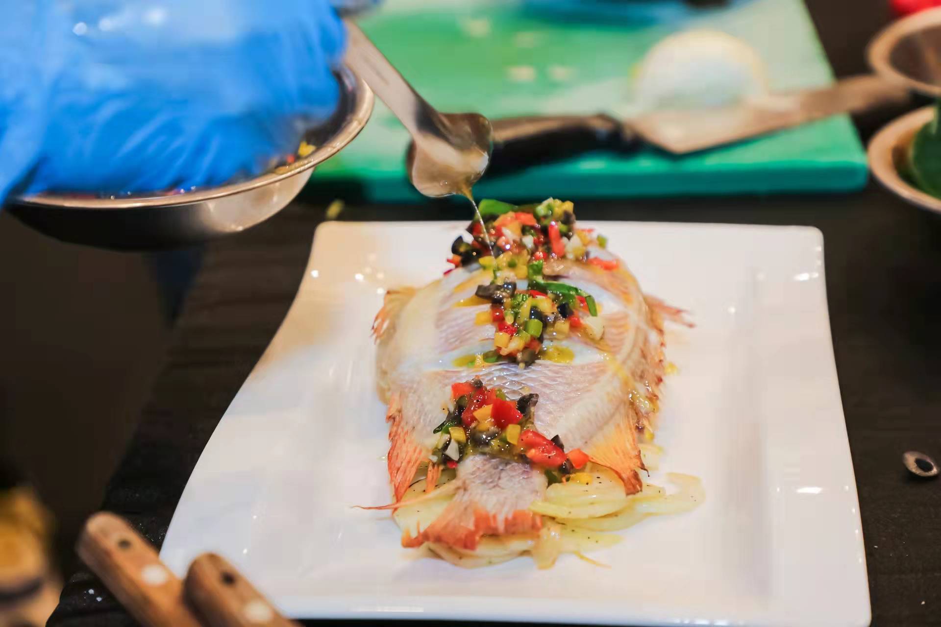 品鉴体验会上,国际油橄榄理事会经济与推广部主管 Ender Gündüz(恩德·冈迪兹)先生在会上发言,对国际及中国橄榄油市场的现状和未来进行了解读,同时现场还有中国经济林协会油橄榄分会秘书长白小勇先生带领嘉宾们品鉴橄榄油,中国首批注册营养师张飞先生为嘉宾们解读橄榄油的健康密码,精通地中海高端料理的Le Stelle星想·地中海餐厅的总厨Chef Buda现场厨艺展示烹饪大明虾牛油果沙拉和烤红鲷鱼,展现如何将上等的橄榄油和追求健康的烹饪方式结合,致力于为现场嘉宾们带来一场多角度、多层次的橄榄油品鉴盛宴。
