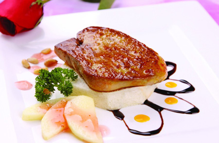 2.一般鹅肝是带有浅浅粉红的象牙色,或淡金黄色或淡青黄色。