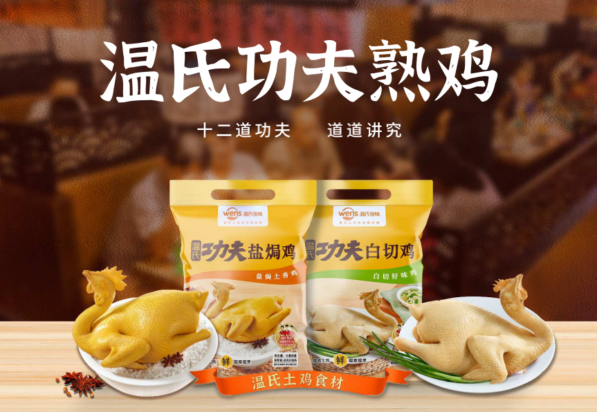 拿温氏佳味核心大单品“功夫熟鸡”系列来说,选定盐焗鸡、白切鸡、猪肚鸡等菜品为产品方向,一是因为这些粤菜的经典代表菜品,而粤菜近两年发展势头强劲;二是因为这些菜品的后厨出品转化率极高。这些,奠定了“功夫熟鸡”成为爆品的基础。