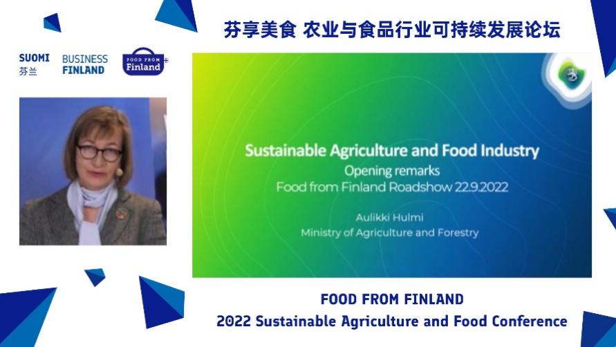 9月22日,由芬兰国家商务促进局(Business Finland)芬兰国家食品推广项目(Food from Finland)主办的芬享美食中国巡展启动会暨食品行业可持续发展研讨会(以下简称研讨会)成功举办。通过线上形式,来自两国的相关领导、龙头企业一起针对食品行业的可持续发展展开深度对话。