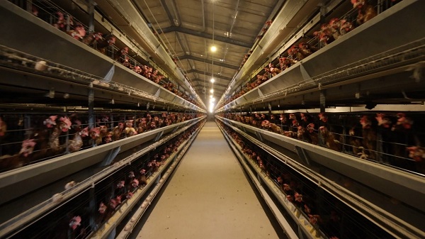 “这个厂区一共有5个‘产蛋车间’,每个车间有2万只鸡,但只需要1个工人来管理就够了”。