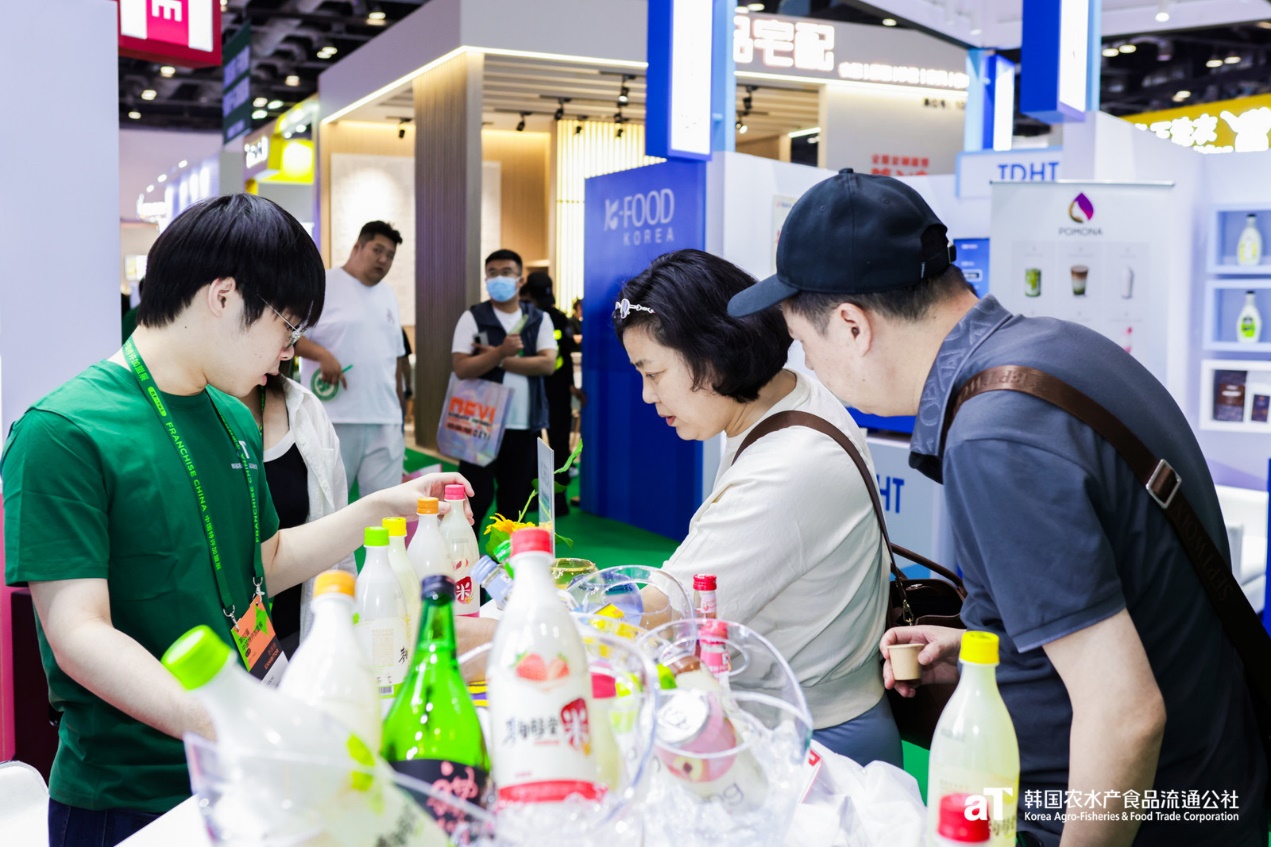 为期三天的韩国馆展位访客源源不断,咨询洽谈人流如潮。本次展会以商超、学校、海外出口、咖啡厅、餐厅等为对象进行了洽谈,以韩国柚子茶、酒类饮品为主要产品进行了供货合作、批发进货、原料供应等内容的沟通交流,期间洽谈总数约104件,总金额达到约163万人民币。