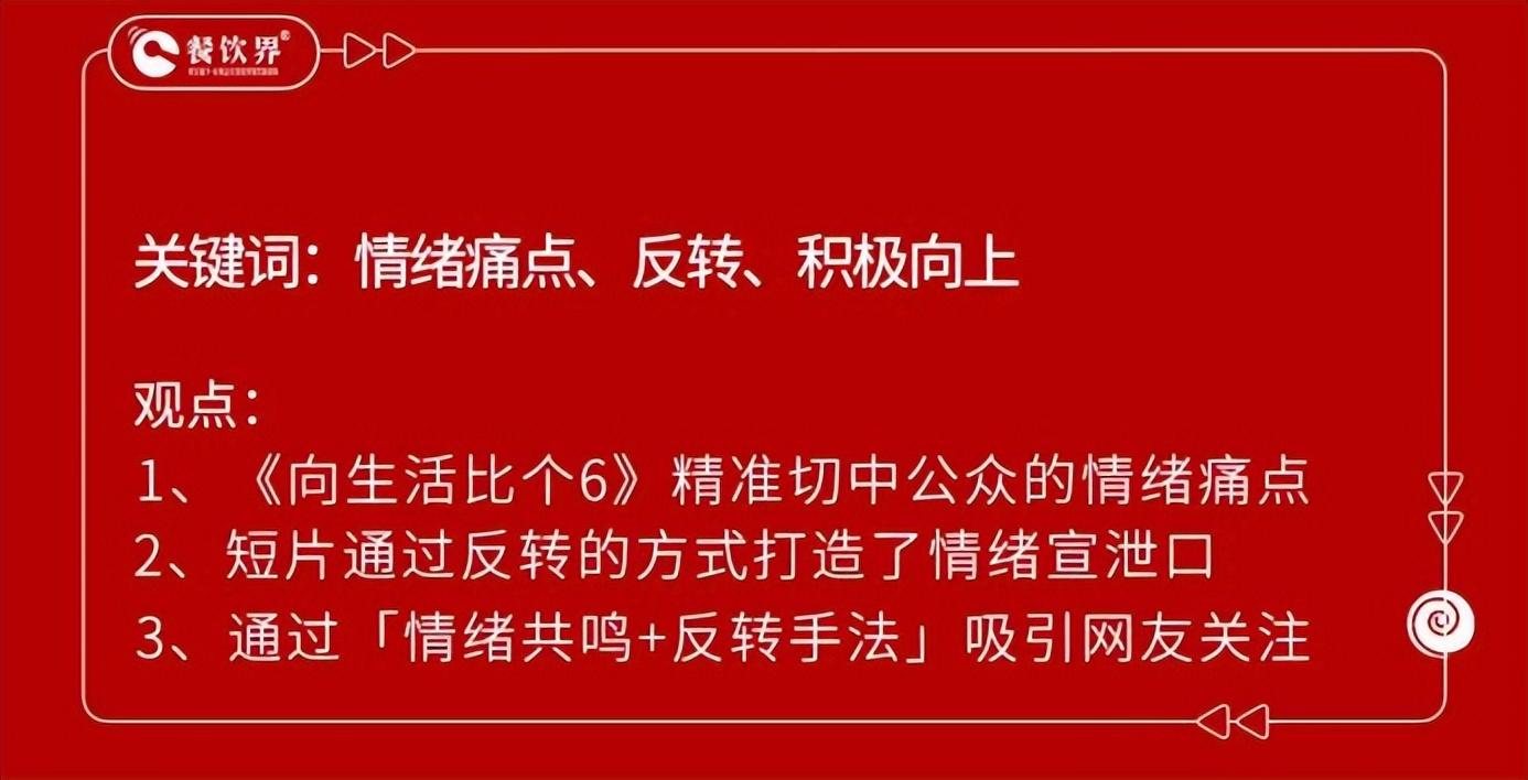 短视频大爆炸的时代,《向生活比个6》凭何在海量的短片中抢占公众注意力?又如何凭借一组短片为八合里66牛肉火锅节预热造势?借由《向生活比个6》,我们或许可以找到公益情绪营销的新样本。