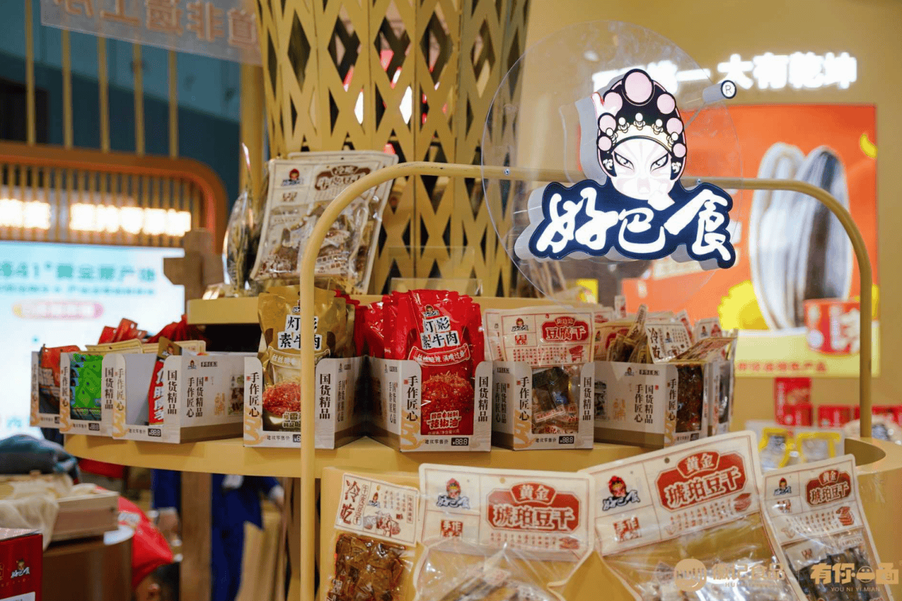 徽记食品和有你一面的展台以“非遗传承,国货精品”为主题,将传统文化与现代设计完美融合,吸引了众多参观者的目光。展台整体设计分为两个区域,分别展现了徽记食品和有你一面的品牌特色。
