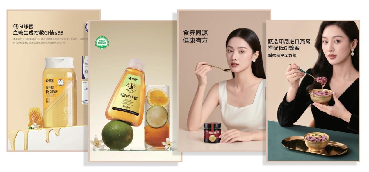 扁扁瓶系列:首创便携式健康蜜饮新形态,涵盖低GI蜂蜜、洋槐蜂蜜、椴树蜂蜜(及蜂王浆蜂蜜液,满足都市人群控糖养生需求;
