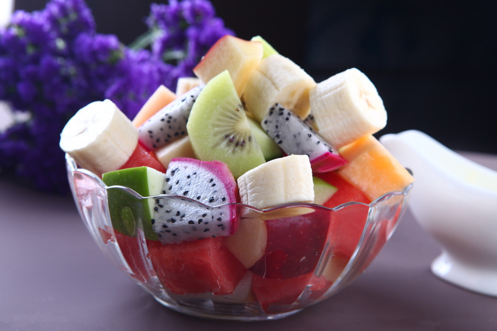 比如包装一道普通的水果沙拉:首先改变了加工形式,将在厨房调味的过程改至客前堂烹,将改刀成块的时令水果分别改刀后装入小碟中,与拍碎的冰淇淋、沙拉酱、卡夫奇妙酱和盛果盘的玻璃盘一起用餐车推至客人桌旁,并倒入广口玻璃瓶中,用手左右摇动约1分钟,待调料与水果充分拌匀后,倒入垫有生菜叶的玻璃盘中。