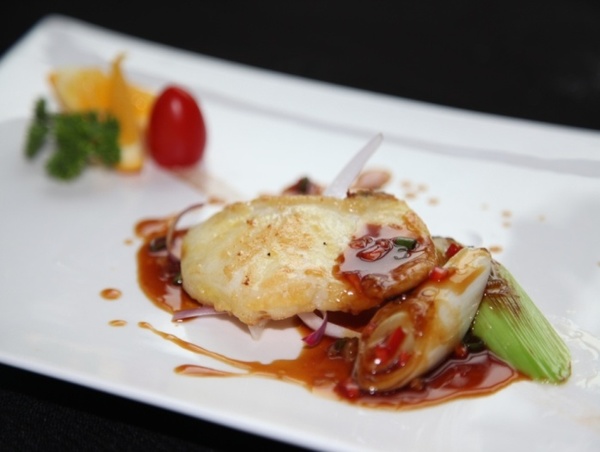 在上桌的时候,服务员给客人介绍:“您好,现在上的这道菜肴叫雪花银鳕鱼,它是用银鳕鱼肉在特殊调料中泡入味后再煎制而成,它曾获第三届全国名厨研讨会金奖,现在就请大家为它剪彩。”诸多烹调方法和服务集中起来,也是一种“和”的象征。