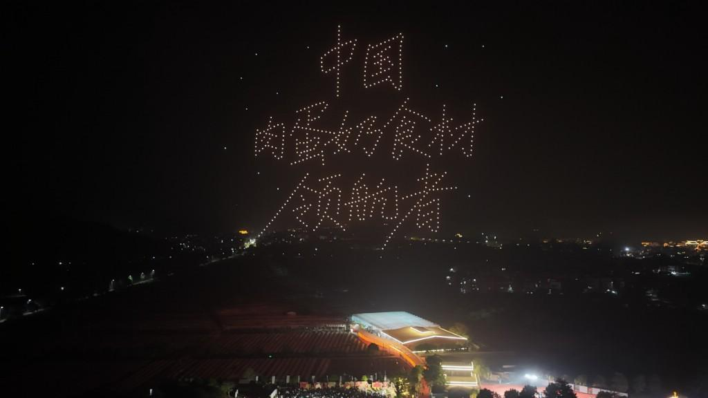 当晚八点,无人机群腾空而起,以天为幕,演绎了一场震撼的光影盛宴。夜空中依次浮现“千人火锅 共创纪录”、“中华土鸡 餐桌C位”、“温氏食材 中国肉蛋奶食材领航者”、“邻家农场 我家厨房”、“温泉康养 寻味新兴”、“农文旅融合发展”等绚丽画面,巧妙串联起当日盛事、本地文化特色与产业发展愿景,并将温氏的品牌定位与理念进行动态呈现。这场科技与艺术交融的表演,与农场的自然生态相映成趣,构建出“产业+文旅+科技”的多元体验场景,将活动热度推向高潮。