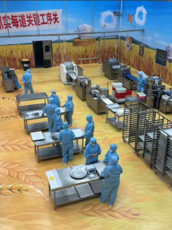 步入生产区,场景悄然转变。以“蓝天白云、金色麦浪”为主题,车间一改常见面貌,还原为女工们熟悉的田间地头、麦田场景。这既贴近员工的生命记忆、传递真切关怀,也让每位工作者能以“为家人做早点”的心意,专注对待手中食材。