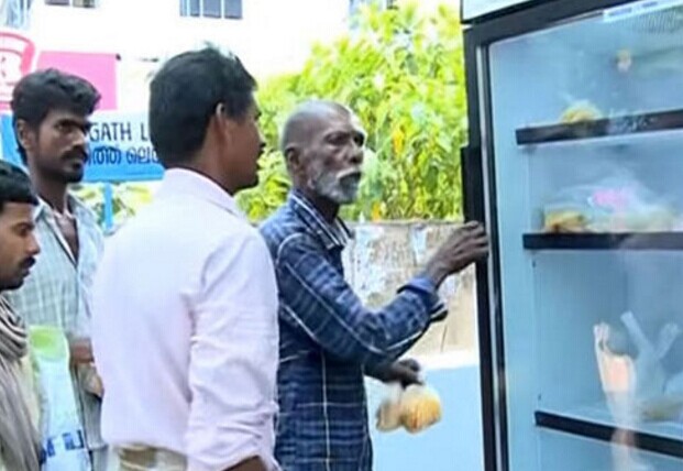 近日,印度某餐厅因在餐厅外放置一个冰箱,免费向流浪者提供食物引起关注。