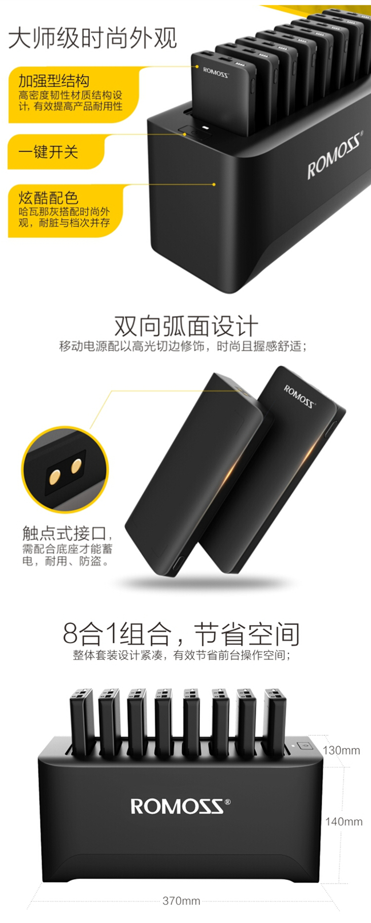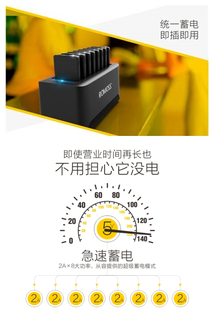 用电需求难满足:餐厅消费者对手机充电的需求较高,专用移动电源很好地解决了这一难题。不仅拥有8个独立的移动电源,能同时满足多位客人的需求,而且大功率底座能时时提供强大的蓄电功能,相互之间轮换充电,充分保证餐厅时刻“电力十足”。