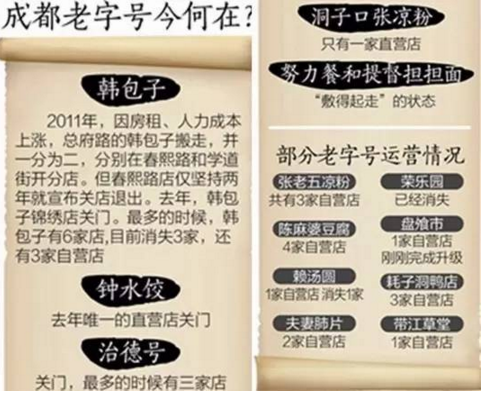 商务部曾两次评定中华老字号,成都21家入选。四川省商务厅分三次认定“四川老字号”,成都共有37家。调查发现,老字号大多面临经营困局其中,“传承与创新”的矛盾性需求,是困扰众多老字号的难题。