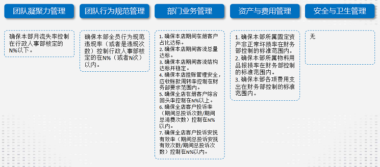 也就是所有的完成标准都由数据来体现,部门职责不仅仅需要描述应当什么,更要描述在什么时间,应当做到什么样。通过这种方法,我们举一反三就可以将企业的整体目标顺利分解到各个部门成为每个部门的职责。然后更可将部门的指标进行分解,就得到了部门各工作岗位的岗位职责。最后更进一步将岗位职责细化,就变成了每一个员工的工作时序。