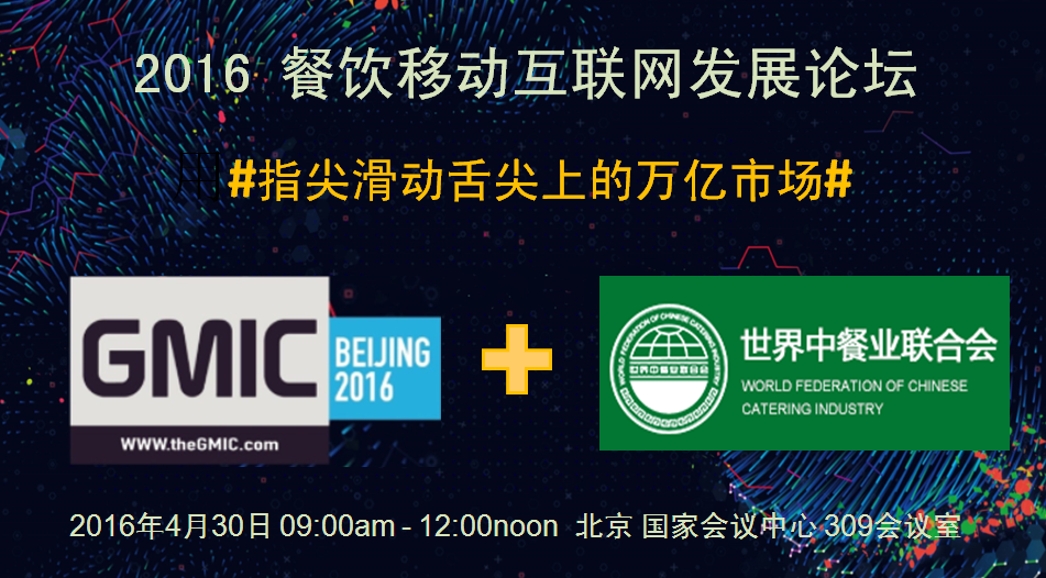 全球最具影响力的移动互联顶级盛会2016 “全球移动互联网大会”(GMIC)将于2016年4月28日-30日在国家会议中心举办。本届GMIC的亮点之一是将“移动互联+”推展到了“舌尖”之上。为更好地探索餐饮业与移动互联网的深度融合,探寻“指尖滑动舌尖上的万亿市场“,世界中餐业联合会携手GMIC及国家会议中心,于2016年4月30日在国家会议中心共同举办“2016餐饮移动互联网发展大会”。