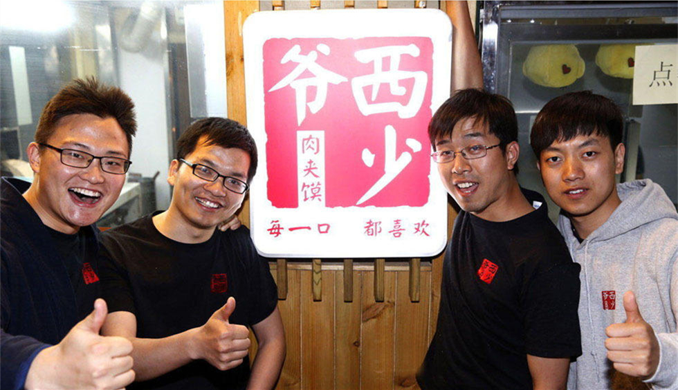 2014年4月,北京五道口,孟兵参与的小店卖出了他们的第一个肉夹馍。两年后,在距离这家店15公里的望京SOHO,他们开了一家100多平方米的“西少爷”肉夹馍旗舰店,这是他们上市企业的13家分店之一。